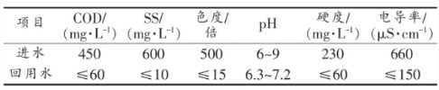 RO出水COD、色度和SS分別為15mg/L、3倍和1mg/L,系統去除率分別達96.7%、96.3%和99.8%。各指標都低于設計回用標準,回用率53%