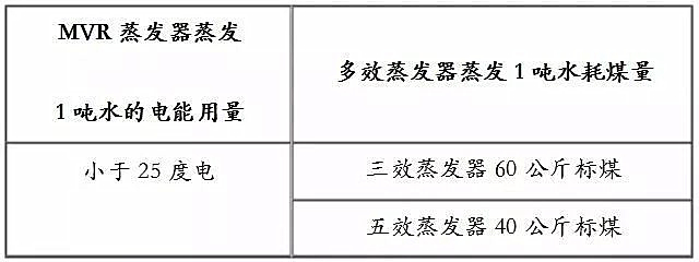 1. MVR蒸發(fā)器與傳統(tǒng)多效蒸發(fā)器煤消耗的價格對比