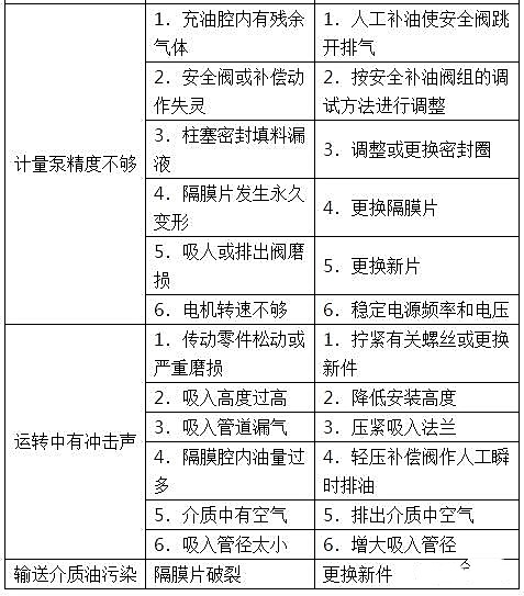 ②泵的常見故障及處理方法見表。